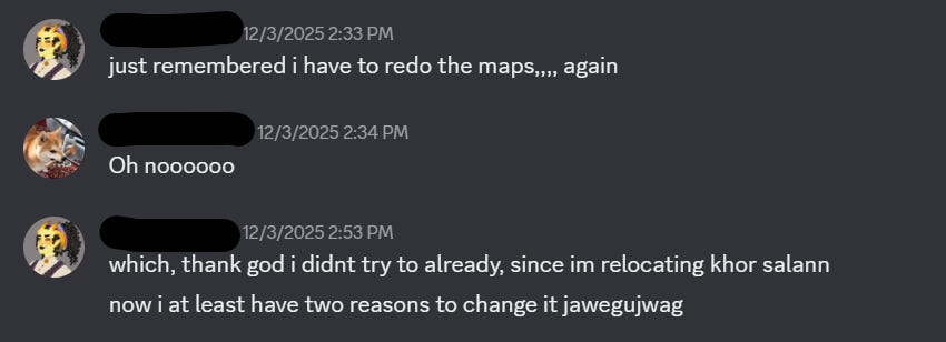 Love seeing all the different version change and grow! I'm constantly playing with mine but the shape is something I'm struggling with. I have a rough idea of what is where, so I just go off vibes for that for now lol. I need to do a zoom in, but then I'm going to have to think of more place names 😆